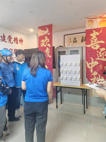 9月29日上午,腾飞社区新业态新就业群体党群服务中心内暖意融融。来自饿了么的5名外卖员、10名快递员,以及腾飞社区的10名志愿者和工作人员齐聚一堂。