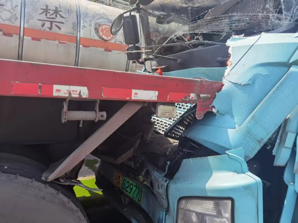 货车追尾驾驶室变形 武安交通执法队员紧急救人