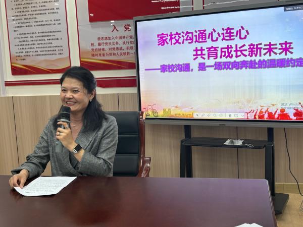 家长会伊始,郝娜娟副校长利用校园广播代表学校向家长们的到来表示欢迎,并围绕家庭教育新要求,介绍了学校本学期的家校合作的具体举措。郝校长强调:“教育需要家校同频共振。致力于培养‘会学习、会生活、会创新’的全面发展的学生,精准分析学情,共探教育方法。”