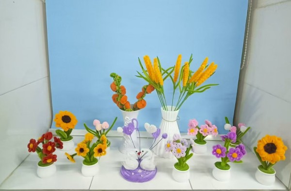 “巧手提质”创意工坊里,孩子们化身小小艺术家。手工课上,彩纸在指尖翻飞成窗花、小动物;一团团彩泥被捏成可爱的果蔬、玩偶;扭扭棒越“扭”越“棒”,一件件“阳光小摆件”将童真巧思凝于指尖。每一件作品都凝结着孩子们的奇思妙想,也让创新能力与动手技能同步提升。