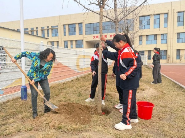 春风送暖,万物复苏,在第48个植树节来临之际,安平县第三实验小学组织开展了“大手拉小手”植树节主题劳动实践活动。校长刘晓丽、部分党员教师及少先队员代表共同参与,用双手为校园种下一片生机,在春日里播撒绿色希望。