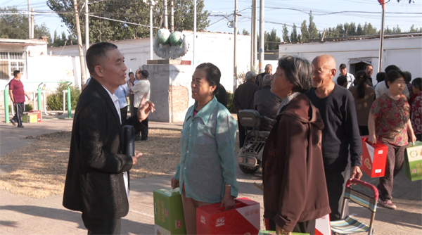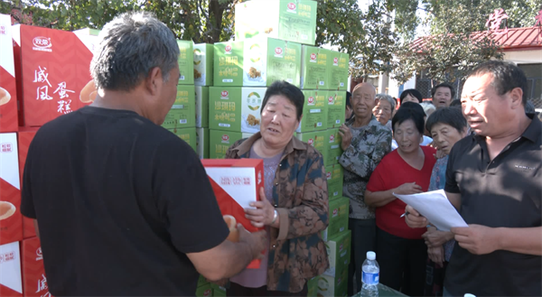 河北双荣食品有限公司董事长沈国荣说道,30年前从这个村出发,今年60岁退休了,又回到了老家杨小庄村,带点随手礼略表一下心意,饮水思源,叶落归根,借着中秋佳节双节这个日子,来看望大家,看望从小待的这片热土,这里承载着30年以来结交的很多的父老乡亲的情谊。