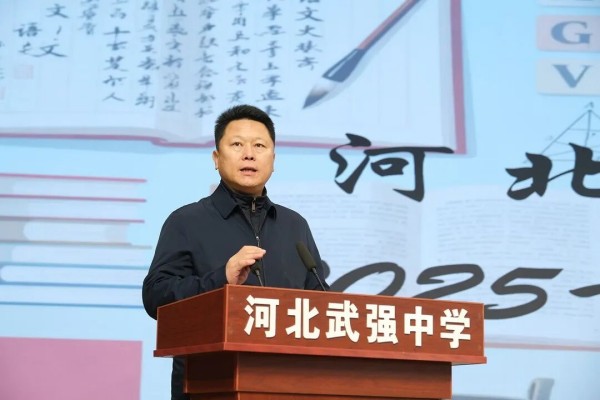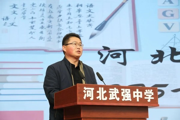 武强中学贾瑞峰校长致辞,深入阐释了学科艺术节“让知识与艺术共生,让素养与审美同长”的育人意义,表达了对同学们在活动中收获知识、涵养美感的殷切期望。