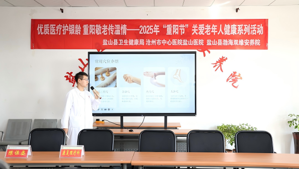 重阳节是我国传统节日之一,2025年重阳节来临之际,为大力弘扬孝亲敬老传统美德,扎实推进老年友好社会建设,关爱老年人的身体健康,提高老年人的健康意识和生活质量,盐山县卫生健康局联合沧州市中心医院盐山医院先后走进养老院、社区、乡镇大集开展“情暖重阳节,敬老送健康”重阳节系列活动。