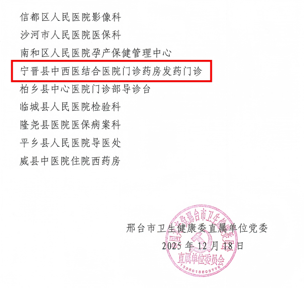 宁晋县中西医结合医院门诊药房获评市级