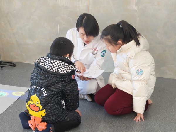 儿童保健科早教师为孩子做儿童专注力训练指导(侯丽芬拍摄)