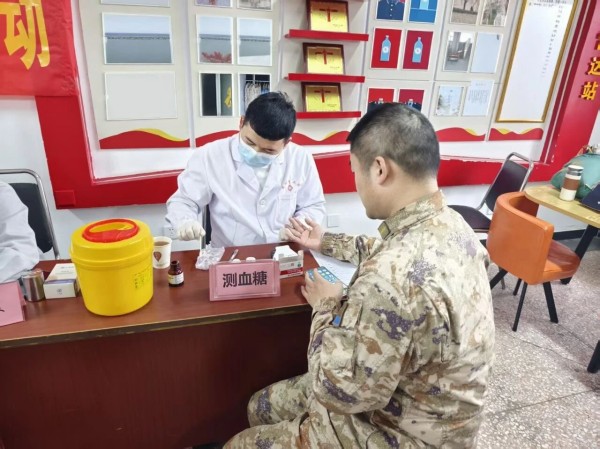 义诊现场秩序井然,耐心细致地接待每一位官兵,认真询问身体状况、既往病史,细致开展血压、血糖、心电图、彩超等基础检查,针对官兵训练中易出现的肌肉劳损、关节疼痛、颈肩腰腿痛等常见问题,逐一进行专业诊疗、开具个性化调理方案;同时为官兵普及高血压、糖尿病等慢性病预防知识,详细讲解科学用药、合理膳食、规律作息的重要性,手把手指导训练后肌肉放松、运动损伤防护的实用技巧。