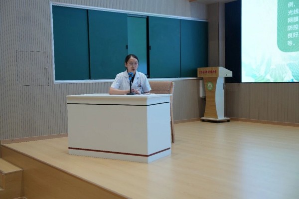 在近视防控专题讲座中,翟星医生围绕“近视防控全知道”主题,用生动的PPT和真实案例,向同学们讲解了近视的形成原因、危害以及发展趋势;同时,针对日常学习生活中常见的不良用眼习惯,逐一纠正读写姿势,细致讲解“20-20-20”护眼法则、合理控制电子产品使用时间、多进行户外活动等护眼要点。翟医生还提醒同学们,要坚持科学用眼、均衡营养、定期检查视力,早发现、早干预、早矫正,共同守护好“心灵的窗户”。