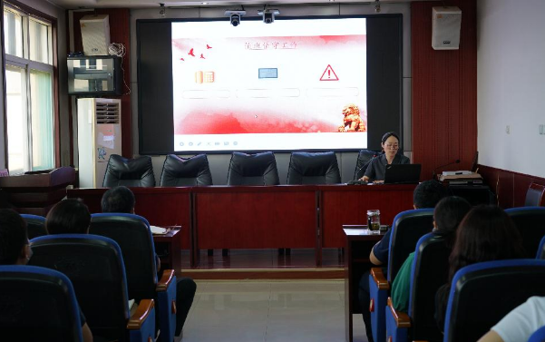 综合办公室干警宋海玉讲解了审判制服着装管理规定和值班纪律,并结合实际情况对审判制服穿着、值班值守、突发事件处置流程以及其他需要注意的事项进行了重点说明。