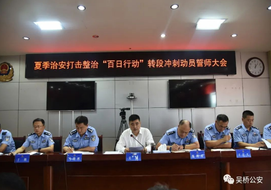 8月3日中午,吴桥县公安局召开夏季治安打击整治“百日行动”冲刺动员誓师大会,就贯彻落实省、市公安机关夏季治安打击整治“百日行动”推进会会议精神进行部署,调度推进全县夏季治安打击整治“百日行动”工作。吴桥县副县长、公安局党委书记、局长吴威主持会议并讲话。县局党委班子成员,全体民警参加会议。