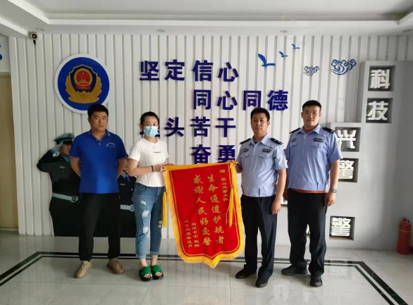 5月29日,断指男子的家人,精心制作了一面锦旗,送到盐山交警张立峰、张国展手中,感谢二位交警为断指治疗赢得了黄金时间。(孟令伟