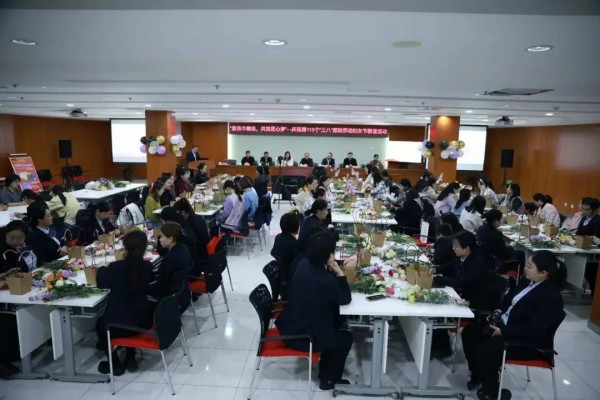 在专业花艺师的现场指导下,女职工们从挑选花材、修剪枝叶到构思布局,精巧搭配,一边交流插花心得,一边拍照留念,定格了这美好的瞬间。经过半个小时的精心打理,一捧捧错落有致、花团锦簇的插花作品将会议室装扮成了花香满径的春天,每一件作品都凝聚了女职工的智慧和与巧思,展现了她们对生活的热爱与追求。