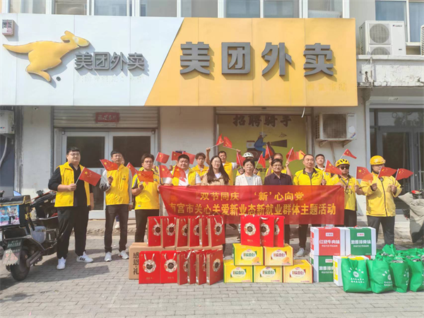 在中华人民共和国成立76周年与中秋佳节来临之际,为弘扬爱国主义精神,传递党和政府对新业态新就业群体的关心关爱,南宫市总工会联合市委社会工作部、社会服务中心开展“双节同庆 新‘心’向党”慰问新就业群体主题活动,为奔波在一线的新就业形态劳动者送去节日祝福与关怀。