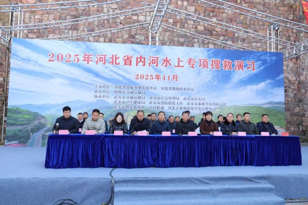 2025年11月19日,河北省内河水上专项搜救演习在武安京娘湖水库举行。省港航事业发展中心副主任孙卫东、省船舶检验中心副主任李灵波莅临现场,指导工作。邯郸市交通运输局二级调研员尹向东,武安市交通运输局党组成员、副局长杨贵宝,以及省交通运输厅安监处、港航处、省交通综合行政执法监督局、省港航事业发展中心、省船舶检验中心、省航道事务中心、相关地市交通运输局等部门领导和嘉宾参加。
