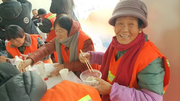 当天孟村县总工会与孟村县城管局等单位联合举办“冬至暖情 饺香传城”包饺子大赛。由16个志愿家庭参加活动,大赛上每一组家长和孩子们努力配合擀皮、放馅、捏褶,在这一系列行云流水的动作中,一个个圆润饱满的饺子出现在摆盘上。在品尝环节特邀环卫工人参与品尝冬至饺子,志愿队的孩子们为环卫工人们送上热水,感谢他们为县城环境做出的贡献。