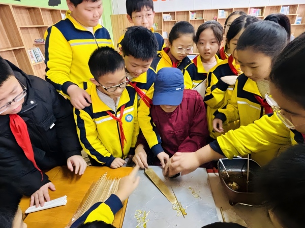 活动以“非遗技艺+地方文化”双轨展示拉开序幕。糖画、剪纸、春联书写三大非遗展区前,传承人们以精湛技艺生动诠释中华优秀传统文化的博大精深:铜勺游走间,糖画跃然石板;巧指翻飞中,剪纸传递祝福;笔墨挥洒处,春联寄托吉祥。同步设置的“献县文化知识长廊”,以图文并茂形式系统呈现“实事求是”发源地的红色底蕴、马本斋、纪晓岚的人物风貌及单桥的历史价值,并特别融入春节年俗文化,让学生在感知贴春联、蒸年糕等民俗中,深刻理解中华文化“讲仁爱、重民本、守诚信、崇正义、尚和合、求大同”的核心理念,将爱党爱国爱乡情怀厚植于心。