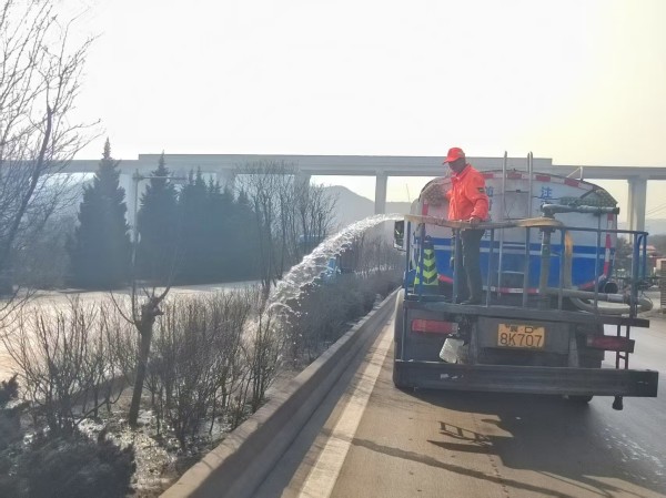 针对春季气候特点,武安市交通运输局科学调度,每日出动10辆水车,对国道309线、邯武快速路、邢峰线、磁左线、永峰线等200余公里重点线路进行循环浇灌。清澈的水流滋润着每一寸绿地,确保沿线30余万平方米绿化带“喝足”返青水,助力苗木吐露新芽。
