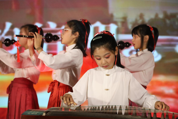 师生联袂呈现的12个精品节目,既有文化传承的经典演绎,又有校园生活的创新表达,生动诠释了“艺术赋能教育”的丰硕成果。整场节目亮点纷呈,开场舞《舞动凤城》点燃全场热情,舞蹈《乒乓少年》跃动青春节拍,快板《打成语快板颂古城邯郸》展现邯郸文化魅力。情景剧《东坡赤壁》再现宋词风骨,器乐合奏《万疆》《十送红军》演绎民乐华章,舞蹈《清庭云月》舞动古典神韵。朗诵《春风如贵客》《春天里的中国》抒发家国情怀,情景剧《生而不同·各自精彩》传递特教温暖,歌伴舞《世界赠与我的》唱响励志心声。大合唱《声声慢》《倔强的花朵》压轴登场,师生同台将艺术氛围推向最高潮,以艺术之名寄托美好教育期许。整场演出通过多元艺术形式,实现了传统文化与现代教育的完美融合,展现了曲周县素质教育的丰硕成果。