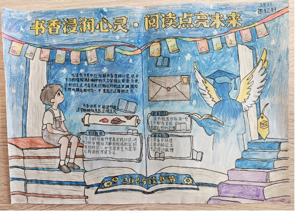 各年级成立专项评委组,制定了科学详尽的评比标准。图书角评比聚焦打造特色阅读空间;手抄报评比紧扣读书主题,展现学生的审美与创意;黑板报评比则通过图文结合的形式,营造浓厚的班级读书氛围。有的班级用绿植、手写书签点缀书架,让图书角成为班级“精神地标”。一幅幅手抄报作品主题鲜明、创意十足,字里行间满是对阅读的热爱。黑板报前,评委们驻足品评,各班版面设计各具特色,让黑板报成为班级阅读成果的集中展示平台。经过评委组的严格评审与综合打分,各年级部分别评选出多个奖项。获奖作品将在升旗仪式上集中展播,为全体师生提供交流学习的平台。