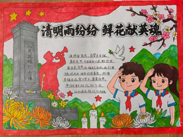 在手抄报比赛中,同学们用手中的画笔描绘英雄形象,用真挚的文字表达崇敬之情。一幅幅色彩鲜艳、构思巧妙的手抄报,展现了孩子们对先烈的深深敬意和对祖国的无限热爱。