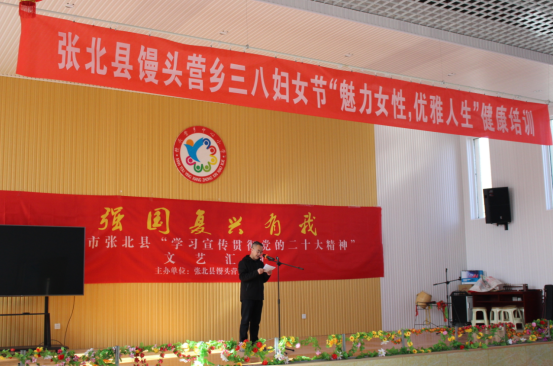 馒头营乡开展了主题为“魅力女性,优雅人生”健康培训暨“强国复兴有我”宣传贯彻落实党的二十大精神文艺汇演,乡党委副书记、政府乡长闫纲明致辞
