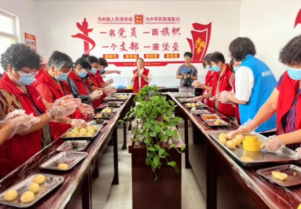志愿者向大家介绍了制作月饼的馅料配比,耐心讲解制作过程,大家分工协作、有条不紊,有的揉皮、有的称重、有的包馅、有的压模、配合默契。制作过程中,志愿者还为村民讲解了中秋佳节的起源、习俗等相关知识。大家一边学习中秋传统文化,一边制作手工月饼,从“学”和“做”两个方面传承中国传统文化。