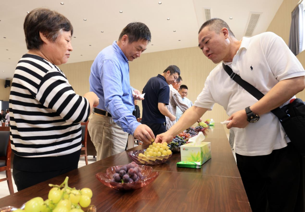 2024年9月25日,邢台市广宗县举办冀中南优质葡萄品鉴会暨2024年中国农民丰收节,参会人员在品尝葡萄