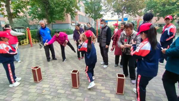 趣味互动环节,成了连接童心与岁月的纽带。“钓水杯”里荡漾着欢笑;“投壶”的箭矢载着默契;“捡豆子”捡到杯子里的是快乐,老人与学子协作,欢笑声此起彼伏。