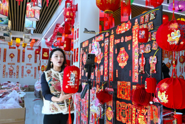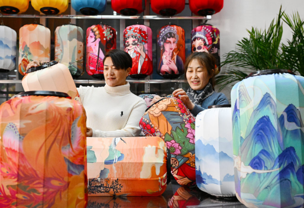 1月7月,石家庄市藁城区屯头村村民在一家宫灯厂制作国潮风灯笼新品。
