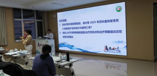 在讨论环节,与会专家围绕"2025年科室突发性死亡控制目标及措施""高钾患者起始治疗时间点和治疗周期"等临床热点问题展开深入交流,分享科室管理经验与诊疗心得,现场学术氛围浓厚。